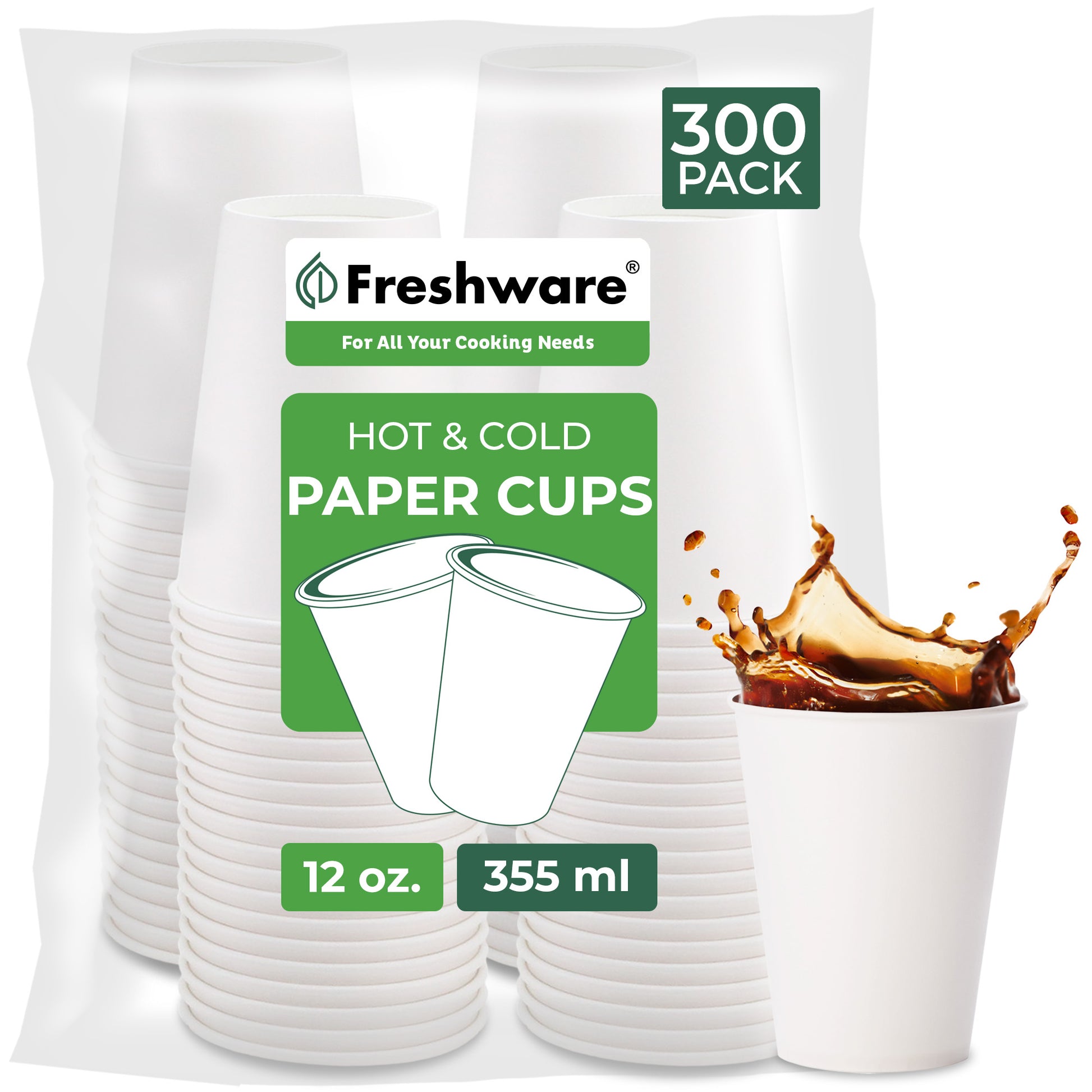 Freshware White Paper Cups with No Lids, 12 oz, 300 Count.