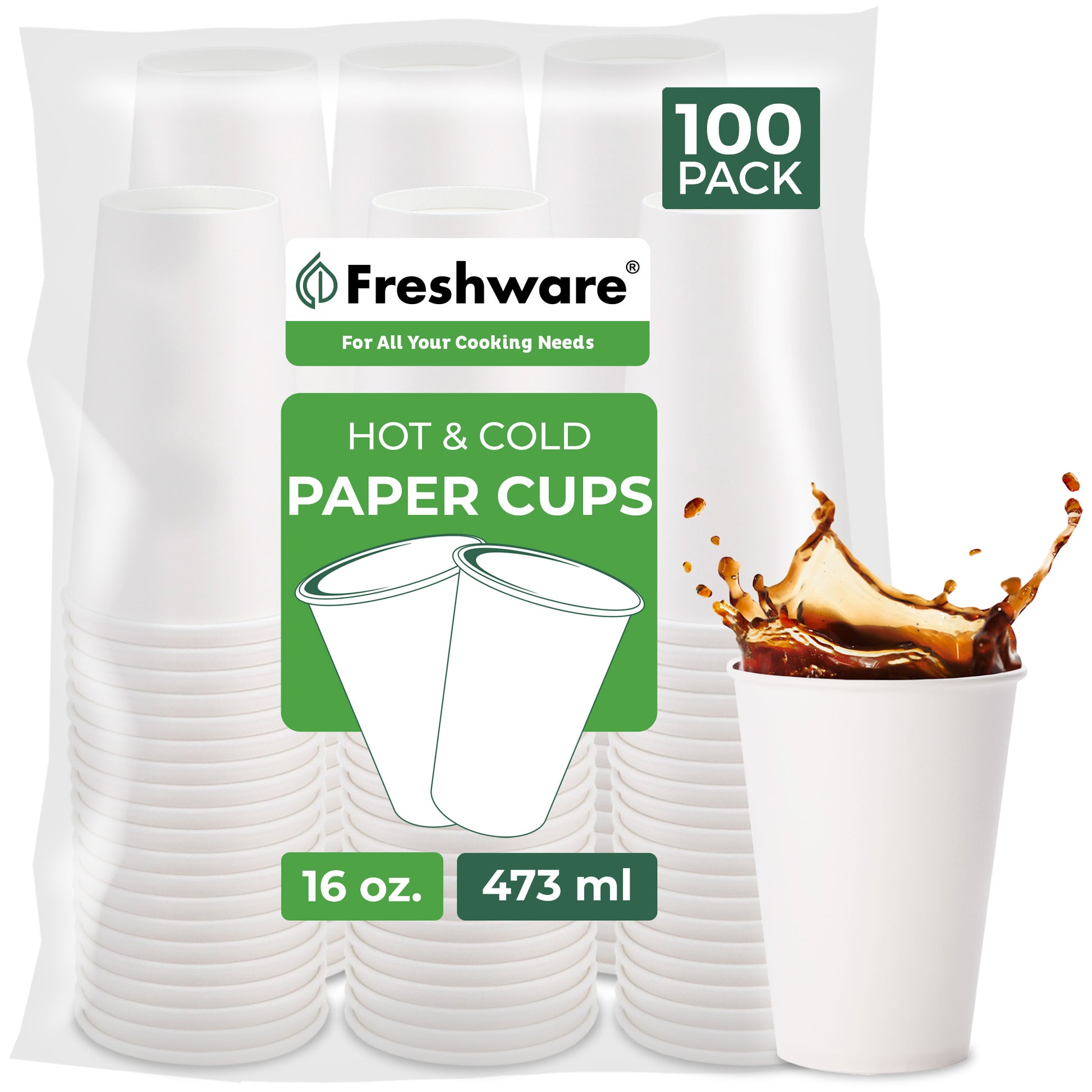 White Paper Cups with No Lids, 16 oz, 100 Count